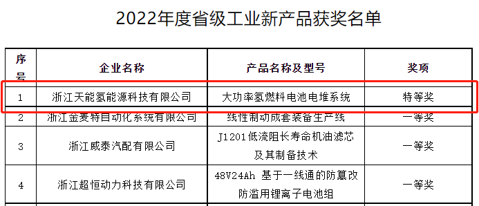 近日,浙江省长兴县经济和信息化局公示了2022年度省级工业新产品获奖名单,由浙江JJB电竞氢能源科技有限公司研发生产的大功率氢燃料电池电堆系统获得全县唯一省级特等奖。